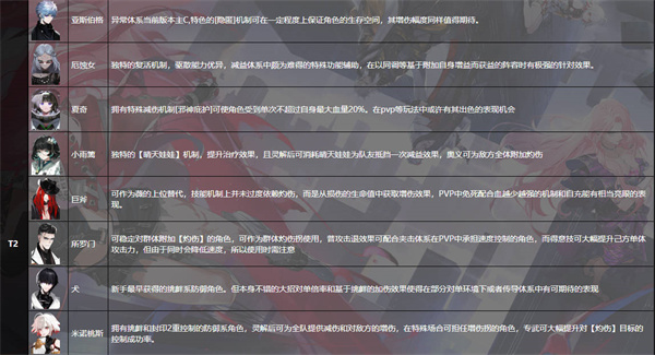 1:首先就是t0阶段了,拉斐尔,巨灵,朱莉,弦,这几个是非常强势的角色,虽然有部分是四星的,但是强度是在游戏中数一数二的;